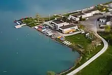 Elle possède trois bâtiments totalisant 633 m2 et entourés de 38 ares d'espaces verts. L'ensemble des installations nautiques du lac est gérée par la communauté d'agglomération de Vesoul[6].