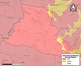 Le retrait-gonflement des sols argileux est susceptible d'engendrer des dommages importants aux bâtiments en cas d’alternance de périodes de sécheresse et de pluie. La totalité de la commune est en aléa moyen ou fort (92 % au niveau départemental et 48,5 % au niveau national). Sur les 78 bâtiments dénombrés sur la commune en 2019, 78 sont en aléa moyen ou fort, soit 100 %, à comparer aux 96 % au niveau départemental et 54 % au niveau national. Une cartographie de l'exposition du territoire national au retrait gonflement des sols argileux est disponible sur le site du BRGM[25],[Carte 3].