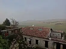 L'église Saint-Pierre vue depuis le bas du rempart. | |||||