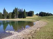 Son sommet est constitué de deux bosses s'élevant à 1 607 et 1 591 mètres d'altitude[1]. Juste au nord du sommet se trouve le lac du Lachat.