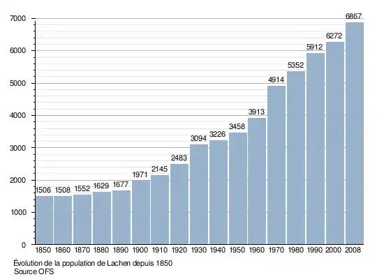 Le graphique suivant résume l'évolution de la population de Lachen entre 1850 et 2008[3] :