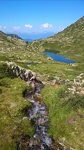 Vue d'un des lacs depuis l'est avec le chaînon de Comborsier à gauche. | |||
