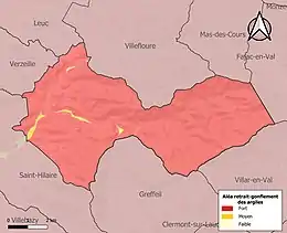 Le retrait-gonflement des sols argileux est susceptible d'engendrer des dommages importants aux bâtiments en cas d’alternance de périodes de sécheresse et de pluie. La totalité de la commune est en aléa moyen ou fort (75,2 % au niveau départemental et 48,5 % au niveau national). Sur les 185 bâtiments dénombrés sur la commune en 2019, 185 sont en aléa moyen ou fort, soit 100 %, à comparer aux 94 % au niveau départemental et 54 % au niveau national. Une cartographie de l'exposition du territoire national au retrait gonflement des sols argileux est disponible sur le site du BRGM[26],[Carte 3].