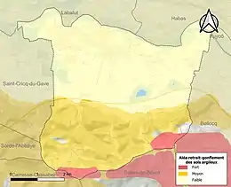 Le retrait-gonflement des sols argileux est susceptible d'engendrer des dommages importants aux bâtiments en cas d’alternance de périodes de sécheresse et de pluie[25]. 39,5 % de la superficie communale est en aléa moyen ou fort (59 % au niveau départemental et 48,5 % au niveau national)[Carte 5]. Depuis le , en application de la loi ELAN, différentes contraintes s'imposent aux vendeurs, maîtres d'ouvrages ou constructeurs de biens situés dans une zone classée en aléa moyen ou fort[Note 6],[26].