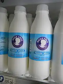Bouteilles (en) de Milka Krem, produit laitier réalisé par le Philippine Carabao Center (en), au Central Luzon State University (en) (Philippines).