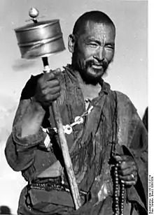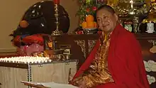 Le titre de lama (tibétain : བླ་མ་, Wylie : bla ma, contraction de bla na med pa, « insurpassable »[1],[2]) est donné à un enseignant religieux du bouddhisme tibétain[3]. Robert A. F. Thurman traduit lama par « mentor[4]. » D'une manière générale, le terme lama, qui s'utilise aussi en Occident, désigne un niveau de réalisation spirituelle avancé. Il s'applique à un enseignant considéré comme une source de la vérité qui libère[5]. Il y a des lamas moines et parfois des lamas nonnes; on trouve aussi des lamas laïques (en particulier dans le Nyingmapa): ils vivent à l'écart de leur temple local, mais se réunissent parfois pour la pratique de certains rituels[5].