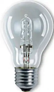 - rendement lumineux 30 % supérieur (25 lm/W, pour les dernières générations de lampe halogène à 230 V), par rapport à celui d'une ampoule à incandescence classique[12] (par exemple une ampoule halogène 100 W éclaire autant qu'une incandescence classique de 130 W) ;