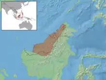 Cette espèce est endémique de Bornéo. Elle se rencontre en Malaisie orientale et au Kalimantan en Indonésie[1].