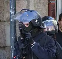 Depuis début 2009, les forces de l’ordre françaises sont également équipées d’un lanceur de balles de défense 40 mm fabriqué par l'armurier suisse Brügger & Thomet, le B&T LL06, appelé LBD 40 en France, une version non létale du lance-grenades B&T GL06. Il s’agit d’un lanceur de munition de 40 mm de diamètre qui utilise des projectiles non-sphériques afin d’assurer précision et puissance d’arrêt de 10 à 50 mètres[15]. Son exportation est régie par la loi sur le contrôle des biens (LCB) et la loi fédérale sur le matériel de guerre (LFMG)[16]. En France, ce Lanceur de Balles de Défense est classé comme arme de « catégorie C » "Arme à feu fabriquée pour tirer une balle ou plusieurs projectiles non métalliques"
