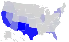 L'espagnol est la langue romane la plus utilisée et la deuxième langue la plus utilisée. Selon l'American Community Survey (en), en 2016, elle est parlée à la maison par plus de 40 millions de personnes, soit 13,35 % de la population[7]. Si de nombreux immigrés hispanophones récents ne parlent pas couramment l'anglais, presque toute la deuxième génération parle très bien cette langue. En plus, seulement la moitié de la jeune génération parle toujours l'espagnol[19].