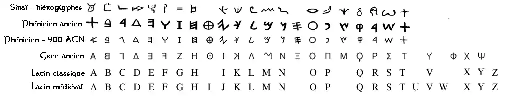 On ne peut parler des langues sémitiques sans ajouter une note sur les alphabets permettant de les transcrire. L'alphabet phénicien est l'ancêtre direct des alphabets hébreu, arabe, grec et latin.
