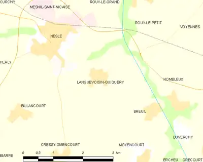 Languevoisin-Quiquery se situe à l'extrême est de la Somme, à proximité de l'Aisne.