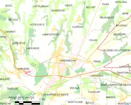 De manière générale, Lannemezan est une bastide située au centre du plateau de Lannemezan entre Tarbes et Toulouse sur la Petite Baïse. La ville de Lannemezan a une superficie de 1 903 hectares[1]. Entre Atlantique et Méditerranée, au débouché des vallées pyrénéennes, Lannemezan s'impose comme une cité stratégique par sa position géographique privilégiée.
