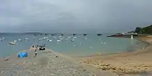 La plage de Lanvéoc : vue vers l'est depuis la cale du port.
