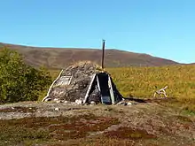 Plusieurs vestiges du néolithique indiquent la construction de huttes sur les sites occupés durant l'hiver, parfois par petits groupes[17]. Dans le premier millénaire de notre ère, des habitations sont construites près des tourbières, utilisées probablement par des Samis des forêts (par opposition aux Samis des montagnes)[17]. Le grand nombre de vestiges de cette époque jusqu'au début du Moyen Âge indique probablement une expansion de la culture same[17].