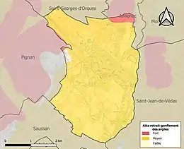 Le retrait-gonflement des sols argileux est susceptible d'engendrer des dommages importants aux bâtiments en cas d’alternance de périodes de sécheresse et de pluie. 99,3 % de la superficie communale est en aléa moyen ou fort (59,3 % au niveau départemental et 48,5 % au niveau national). Sur les 987 bâtiments dénombrés sur la commune en 2019, 987 sont en aléa moyen ou fort, soit 100 %, à comparer aux 85 % au niveau départemental et 54 % au niveau national. Une cartographie de l'exposition du territoire national au retrait gonflement des sols argileux est disponible sur le site du BRGM[18],[Carte 2].