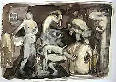 Le musée russe détient également un carton de Serebriakova, créé par elle pour son tableau le Bain [18]. Dans ces croquis grandeur nature, réalisés au charbon sur carton, l'artiste tente de transmettre les différentes poses et mouvements des modèles. Elle accorde une attention particulière à la « modélisation des formes clair-obscures, à l'amélioration des proportions, à l'expression des lignes féminines les plus harmonieuses »[19].