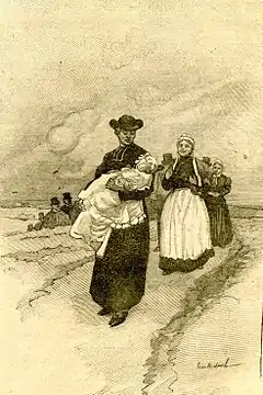 "Devant la porte de la ferme, les hommes endimanchés attendaient..."[1]