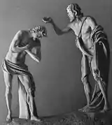 Elle n'est finalement placée dans une alcôve latérale de la nef de l’église que près de 4 siècles plus tard, en 2017[4],[5],après avoir été longtemps exposée séparément de part et d'autre de la porte de ville du pont Milvius[6],[7], puis au palais Falconieri[8], puis dans l'atrium du musée de Rome du palais Braschi[5] (où elle est remplacée depuis par une reproduction de l'œuvre, entre des copies des statues de saint Pierre et saint Paul du même artiste, créées pour la Porta del Popolo de la Piazza del Popolo et pour la basilique Saint-Paul-hors-les-Murs de Rome[9]).
