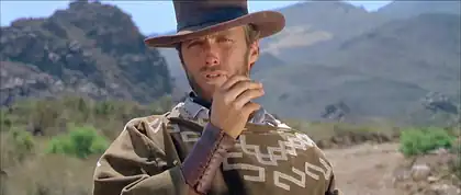 Clint Eastwood incarne celui qui est peut-être le mieux réussi de tous les personnages créés par Leone : grandiose, laconique, un as de la gâchette soigné dans les moindres détails. La présence du cigare de Blondin est un symbole très important dans le film. Eastwood en a un à la bouche dans presque toutes les scènes et le rallume continuellement. De plus, le cigare devient un élément clé de l'action à quelques occasions (la poursuite en suivant la piste des cigares toujours plus fraîchement fumés, l'allumage de la mèche du canon et de celle des explosifs, partage avec le jeune soldat agonisant, etc.).