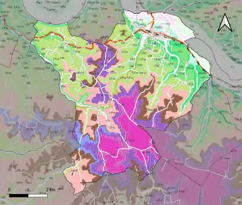La superficie cadastrale de la commune publiée par l'Insee, qui sert de référence dans toutes les statistiques, est de 50,37 km2[6],[11],[Note 2]. La superficie géographique, issue de la BD Topo, composante du Référentiel à grande échelle produit par l'IGN, est quant à elle de 50,16 km2[3].