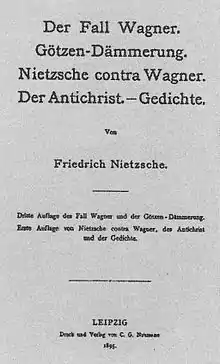 Le Cas Wagner (Der Fall Wagner) est un pamphlet du philosophe allemand Friedrich Nietzsche, publié en 1888. Il prend la forme d'une lettre divisée en plusieurs paragraphes numérotés, suivi par deux post-scriptum et un épilogue. À travers Richard Wagner, Nietzsche dessine et critique en creux la décadence de son temps, caractérisée par l'histrionisme, l'hypocrisie morale et la manipulation des masses.