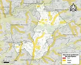 Le retrait-gonflement des sols argileux est susceptible d'engendrer des dommages importants aux bâtiments en cas d’alternance de périodes de sécheresse et de pluie[17]. 17,2 % de la superficie communale est en aléa moyen ou fort (27 % au niveau départemental et 48,5 % au niveau national métropolitain)[Carte 2]. Depuis le , en application de la loi ÉLAN, différentes contraintes s'imposent aux vendeurs, maîtres d'ouvrages ou constructeurs de biens situés dans une zone classée en aléa moyen ou fort[Note 4],[18].