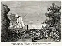 À l'horizon : la mer. C'est le soir. Des capitaines et des soldats navarrais et castillans boivent et chantent. À gauche sont accroupis des prisonniers, des prisonnières et des musiciens maures. Désordre très pittoresque.