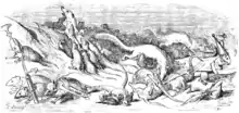 (6) Herbes, fleurs ou joncs qu'on épanche sur le chemin quand on veut faire honneur au passage de quelque personne (dictionnaire de Furetière). Dans cette fable il s'agit d'un lit de cadavres.