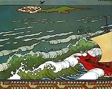 (Le vent chante allègrement / Le vaisseau file gaiement / Par-delà l'île Bouïane / Vers l'illustre roi Saltan[5]).
