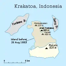 L'éruption du Krakatoa en 1883 a tué environ 36 000 personnes et déclenché des tsunamis. Quant à l'explosion qui s'est alors produite, un récitatif de cette histoire précise que sa force équivalait celle de 10 000 bombes H et produisit le bruit le plus énorme de toute l'histoire du monde. L'Indonésie, à l'époque sous domination hollandaise, était reliée par fil télégraphique, la catastrophe a été connue dans le monde entier et décrite dans les journaux.