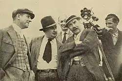 André Berthomieu sur les lieux du tournage du film, en compagnie de Félicien Tramel.