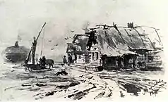 Parmi les études préparatoires ayant servi de base au développement du tableau terminal, les critiques d'art classent également Paysage campagnard ou Village. Raspoutitsa[37], 1870, papier, sépia, 17 × 28 cm, qui se trouve à la Galerie nationale d'Art de Perm[38].