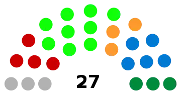 | Les Verts (PES) | 750 | 30,54 % | 9 / 27 |
