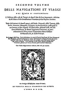 La rédaction de Ramusio (R) n'est pas un manuscrit mais un imprimé, pourtant elle est la meilleure rédaction en italien et elle inclut de nombreuses additions[n 7].