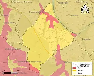 L'extrême nord du territoire communal est protégé des inondations par une série de digues (les mattes[20]) qui longent le cours du fleuve. Une deuxième série de digues complète ce dispositif en enserrant également les cours du Pichagouille et du Mayne[6]. En effet, lorsque la Garonne est en crue, elle refoule l'eau de ses affluents vers l'amont provoquant par là-même leur crue.