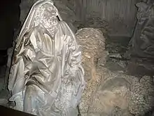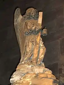 Ce monument s'est détérioré avec le temps. Le fond, sur le mur, a subi au moins trois modifications, discernables aux couleurs différentes du matériau. Le calice tenu par l’ange a perdu sa partie supérieure et la traverse de la croix a disparu ; l’un des apôtres voit sa main droite amputée de ses phalangettes. Le socle qui représente le sol est fissuré, des graffitis déparent le bloc sur lequel se tient l’ange et des plaques noires mangent la pierre sur certaines statues.