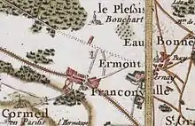 Le Plessis-Bouchard sur la carte de Cassini, vers 1780.