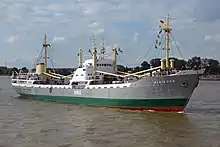 Le Discret est très ressemblant et tout à fait comparable à un petit cargo allemand, un peu plus récent que lui puisque construit en 1958 : le MS Bleichen