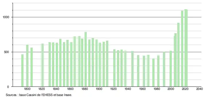 - Fiches Insee - Populations légales de la commune pour les années 2006, 2007, 2008, 2009, 2010, 2011, 2012, 2013, 2014, 2015, 2016, 2017, 2018, 2019, 2020 et 2021.
