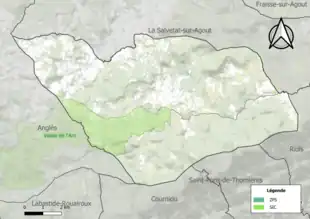- les « sagnes du plateau d'Anglès et bassin versant de l'Arn » (9 725 ha), couvrant 10 communes dont deux dans l'Hérault et huit dans le Tarn[20].