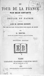 - G. Bruno, Le tour de la France par deux enfants : devoir et patrie : livre de lecture courante avec 200 gravures instructives pour leçons de choses, Paris, E. Belin, (ISBN 2-7011-0252-9 et 978-2-7011-0252-8, OCLC 300313307, lire en ligne)
