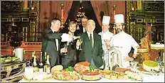Le président de la société Le Train Bleu, Albert Chazal, avec le chef cuisinier, Jean Thauvin (au second plan) en 1988. - Michel Comby (de 1992 à 2000),