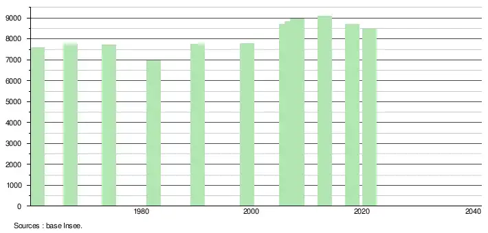 L'évolution du nombre d'habitants est connue à travers les recensements de la population effectués dans la commune depuis 1961, premier recensement postérieur à la départementalisation de 1946. À partir de 2006, les populations légales des communes sont publiées annuellement par l'Insee. Le recensement repose désormais sur une collecte d'information annuelle, concernant successivement tous les territoires communaux au cours d'une période de cinq ans. Pour les communes de moins de 10 000 habitants, une enquête de recensement portant sur toute la population est réalisée tous les cinq ans, les populations légales des années intermédiaires étant quant à elles estimées par interpolation ou extrapolation[14]. Pour la commune, le premier recensement exhaustif entrant dans le cadre du nouveau dispositif a été réalisé en 2008[15].