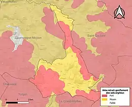 Le retrait-gonflement des sols argileux est susceptible d'engendrer des dommages importants aux bâtiments en cas d’alternance de périodes de sécheresse et de pluie. La totalité de la commune est en aléa moyen ou fort (67,4 % au niveau départemental et 48,5 % au niveau national). Sur les 109 bâtiments dénombrés sur la commune en 2019, 109 sont en aléa moyen ou fort, soit 100 %, à comparer aux 81 % au niveau départemental et 54 % au niveau national. Une cartographie de l'exposition du territoire national au retrait gonflement des sols argileux est disponible sur le site du BRGM[18],[Carte 3].