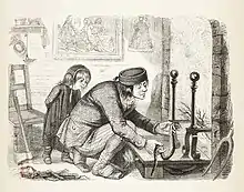 Il l'étend le long du foyer,