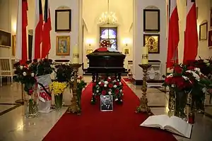 Cercueil de Lech Kaczyński dans la chapelle du palais présidentiel.