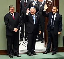 Bronisław Komorowski, Lech Kaczyński et Nicolas Sarkozy, en 2008.