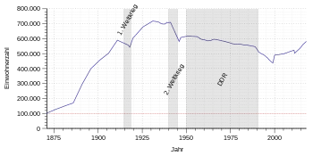 Au Moyen Âge et à la Renaissance, la population de la ville a connu un accroissement lent et irrégulier, du fait de nombreuses guerres, épidémies et famines. Par exemple en 1639, 4 229 personnes, soit environ un quart de la ville, ont péri à cause d'une épidémie de peste. Avec les débuts de l'industrialisation au XIXe siècle, l'accroissement de population s'est accéléré. Il n'y avait que 32 000 habitants dans la ville en 1800. La barre des 100 000 habitants a été franchie en 1870, la faisant accéder au statut de Großstadt. En 1930 la ville comptait 718 200 habitants, ce qui est jusqu'à présent son record de population, qui a ensuite baissé jusqu'en 1939 à 707 000.