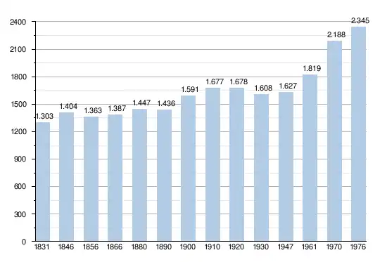 - Sources : INS, Rem. : 1831 jusqu'en 1970 = recensements, 1976 = nombre d'habitants au 31 décembre[2].